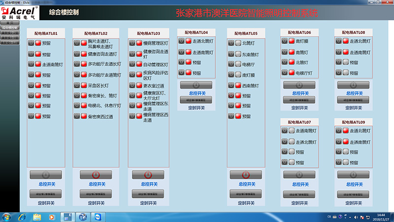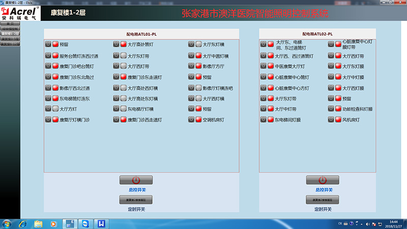 本項(xiàng)目為張家港澳洋醫(yī)院二期工程智能照明監(jiān)控系統(tǒng),該項(xiàng)目需設(shè)置智能照明監(jiān)控模塊,控制公共照明區(qū)域的通斷,護(hù)士站設(shè)置分控室,護(hù)士值班人員可控制照明的啟停,并同時(shí)設(shè)置時(shí)控模塊,規(guī)定時(shí)間點(diǎn)內(nèi)自動(dòng)啟停照明回路。