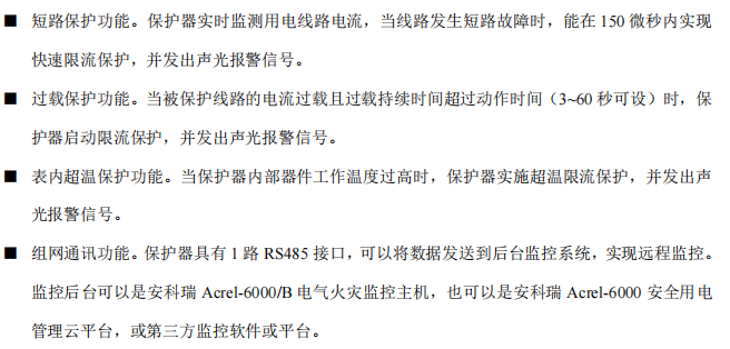 第7.1條:推廣應(yīng)用電氣防火限流式保護(hù)器,用于電氣短路、電線過載發(fā)熱情況下快速切斷故障電路。